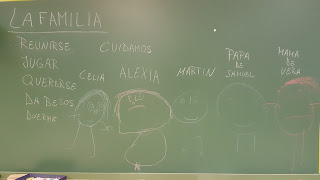 HEMOS EMPEZADO HOY, DIBUJANDO EN LA PIZARRA A ALGUNOS DE LOS MIEMBROS DE NUESTRA FAMILIA.